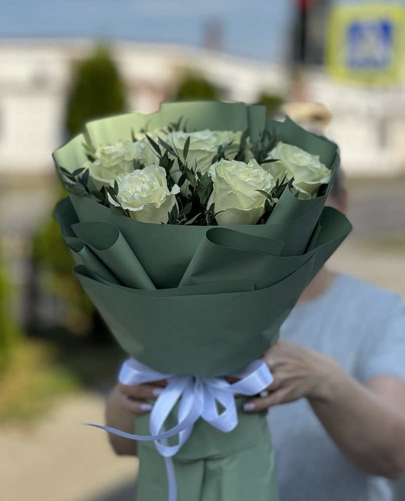 Белоснежка. Букет из 7 белых роз в упаковке